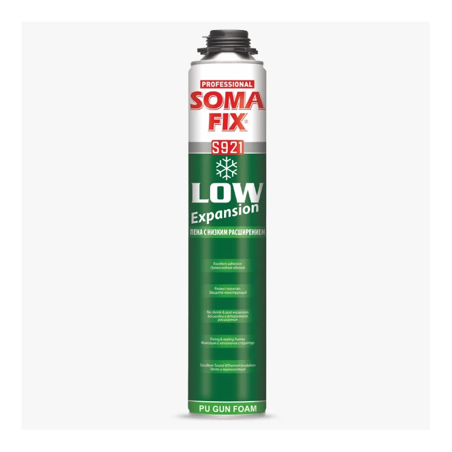 A SomaFix Professional alacsony tágulású téli pisztolyos purhab egy prémium minőségű, egykomponensű poliuretán hab, amelyet kifejezetten hideg időjárási körülmények között történő, precíz felhordásra fejlesztettek. Megbízhatóan működik akár –10 °C-os hőmérsékletig, így ideális választás téli szerelési és szigetelési munkákhoz.
